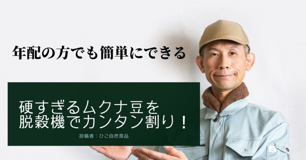 こんにちは、ひご自然食品の久保です。ムクナ豆は硬い殻を持ち、手で割るのは大変です。先日、50代の共同農家が手作業で割ったら、5箱分を1人で割るのに2週間近くかかってしまいました。