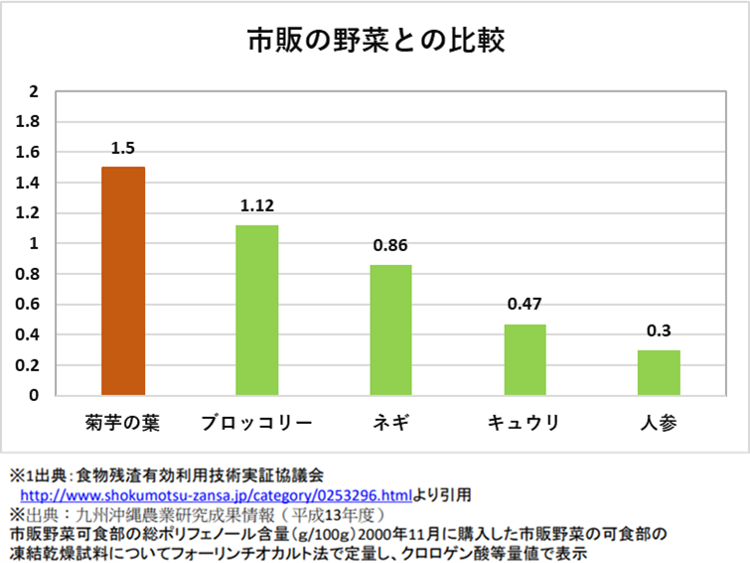 日本食品分析センターにて確認しております。そのため、クロロゲン酸を摂取されたい方は菊芋の葉を摂取してみてはいかがでしょうか?