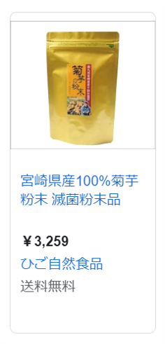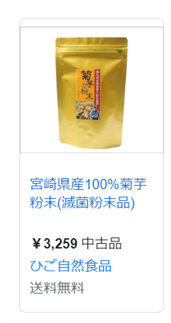 Googleショッピングで菊芋の下に中古品として表示されてしまっています。Googleの担当者の話だと『ランディングページに記載されている農薬不使用に反応した』とのことでした。詳しいことはよくわかりませんが、農薬不使用という文言で中古品としてみなされたようです。