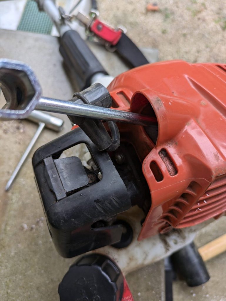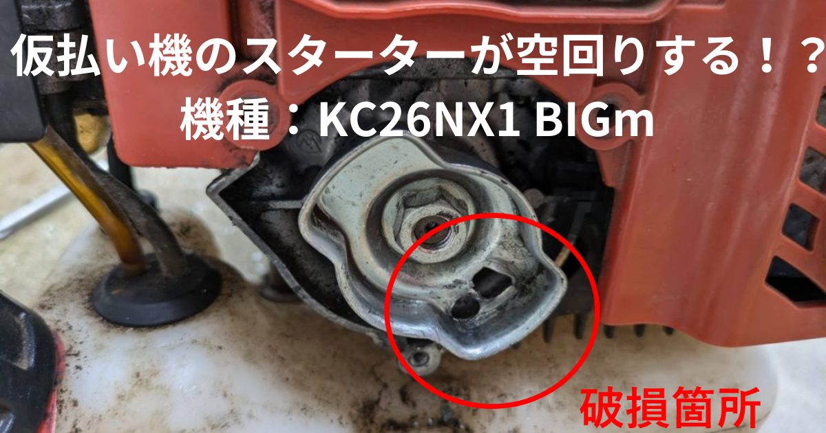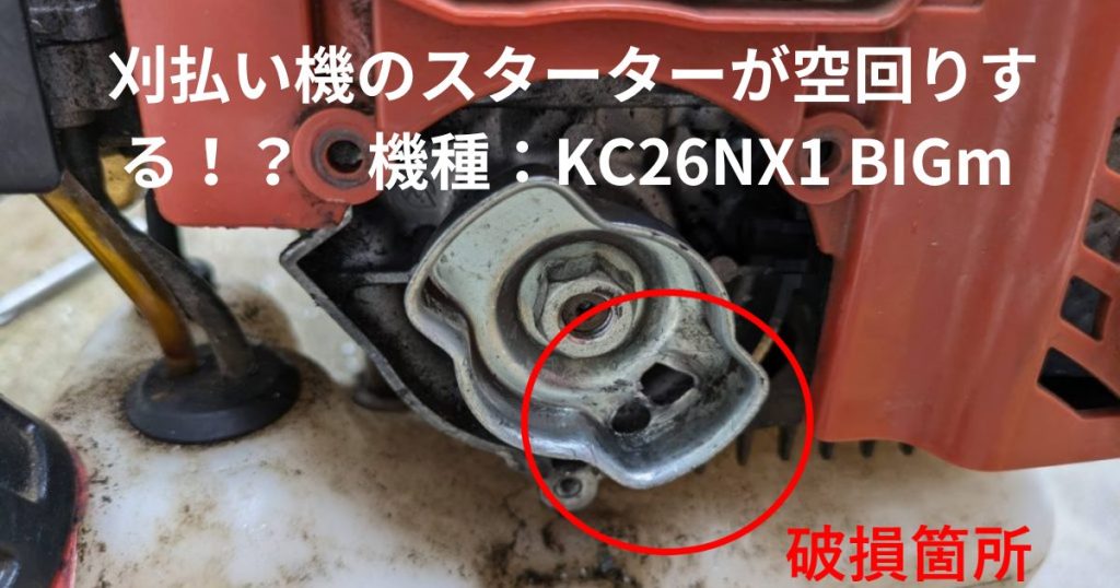 畑の草刈りをしようと思い、刈払い機のエンジンをかけようとしたところ、スターターの紐を引いても空回りしてしまい、エンジンがかからない状態になってしまいました。