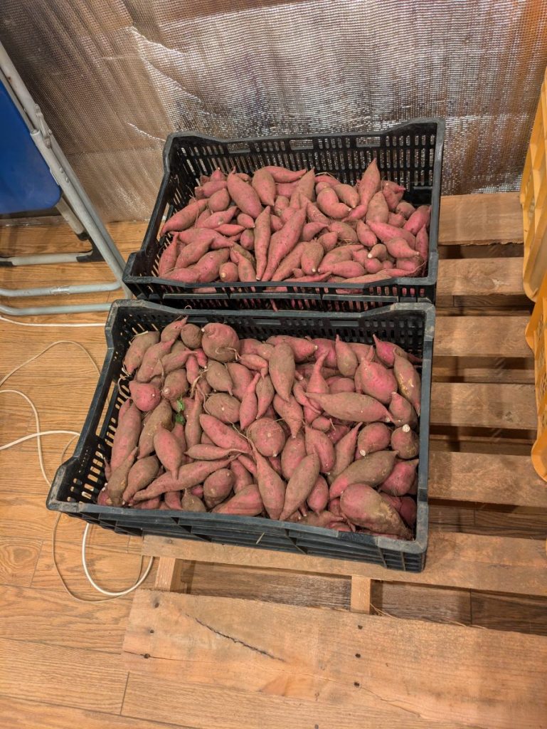 黒マルチシートと竹チップマルチでは重量比で3倍も差が出ました。黒マルチシートの芋はとても大きく、反対に竹チップマルチの方は小ぶりなものが多かったです。個人的な考えでは、黒マルチシートを使わずに竹チップマルチもしくは植物性のマルチを使いたいと思っています。環境に優しい農業を目指していきたいので、次回は竹チップもしくは草マルチを今回よりも、厚く畝に設置して再チャレンジしてみたいと思います。