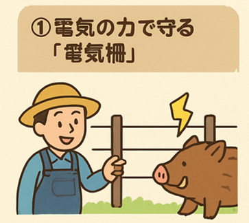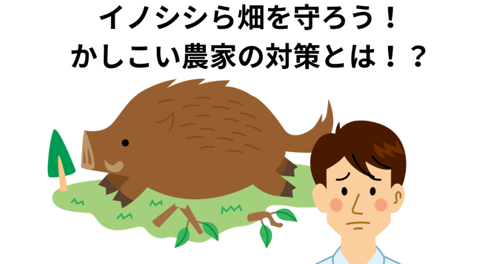 畑の作物を食べたり、土をほり返したりするイノシシ。せっかく育てた野菜が一晩でダメになってしまうこともあります。そんな被害をふせぐために、農家の人たちはいろいろな工夫をしています。