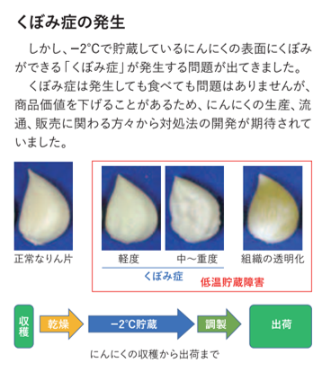 にんにくの乾燥で表面にくぼみができる『くぼみ症』というのが発生するようです。にんにくの価値が下がるため調査したようです。