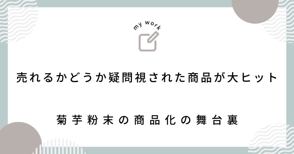 ある日、偶然にも菊芋粉末という商品に出会いました。当時、菊芋が再び注目を集めていた時期で、血糖値に良いという効果があると聞いていました。しかし、同僚たちはこの商品に対して疑問を抱いていました。「売れるとは限らない。これでどれだけの売上を上げられるのか?」という質問が次々と飛び出し、私のプレゼン能力も低かったため、商品化案は潰れかけていました。