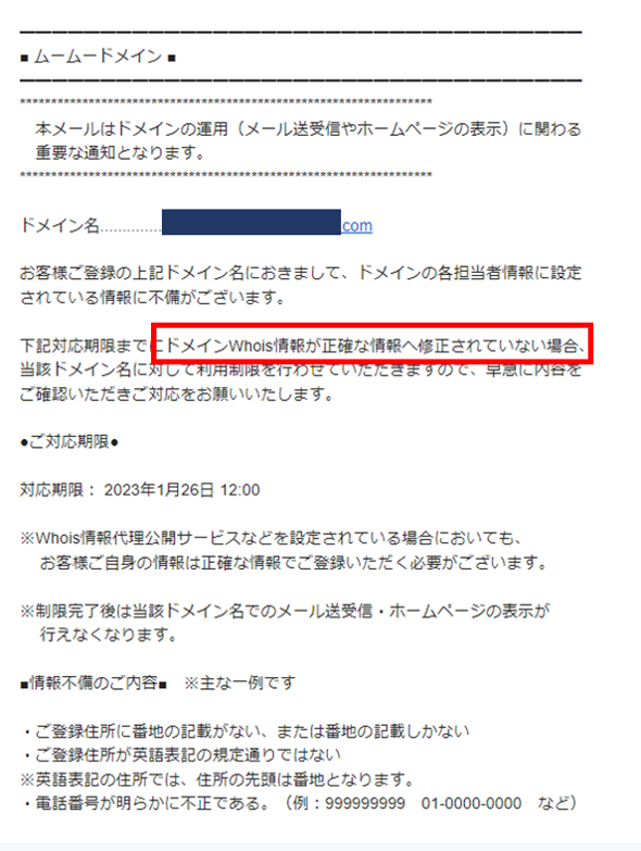 【重要】[ムームードメイン] ご登録情報修正のお願い