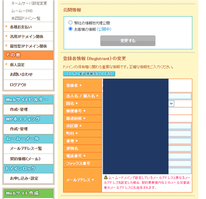 MuuMuuDomainのWHOIS情報修正をしてみた