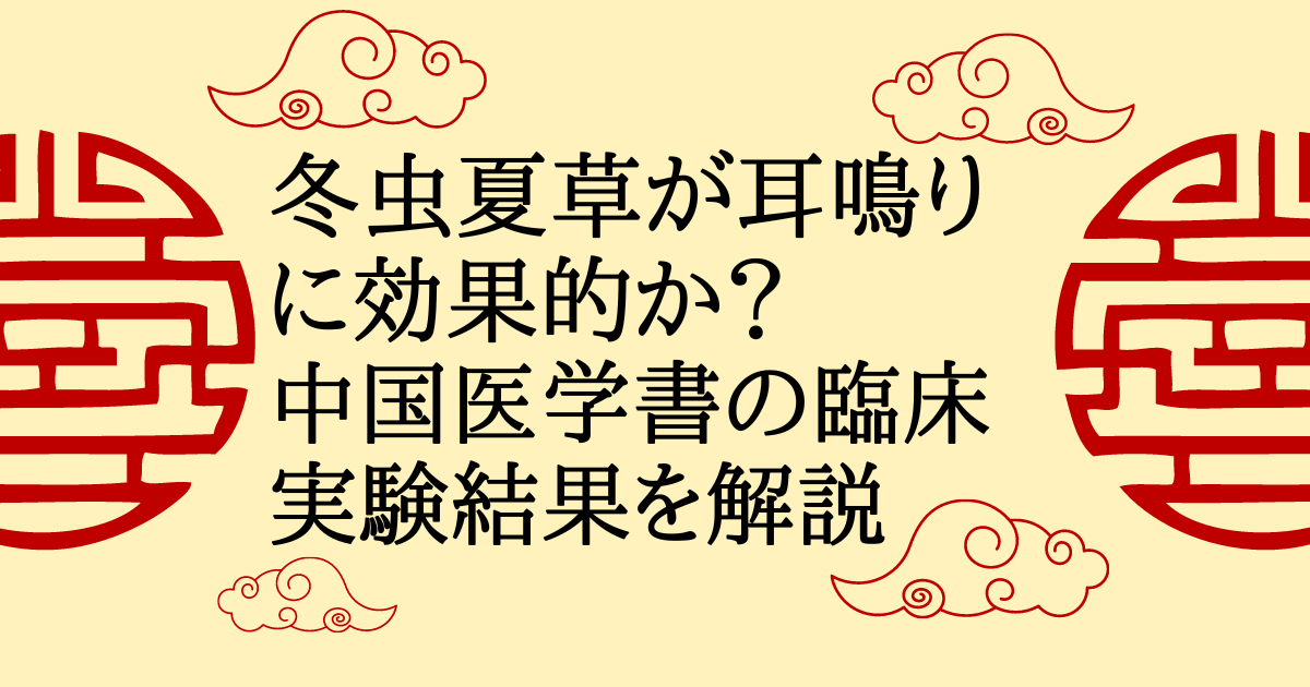 冬虫夏草が耳鳴りに効果的かどうかを調べた結果、中国の医学書「中薬現代研究と臨床応用」によると、冬虫夏草を4週間にわたり24回経口投与した90%の患者で改善が見られたという結果が掲載されています。