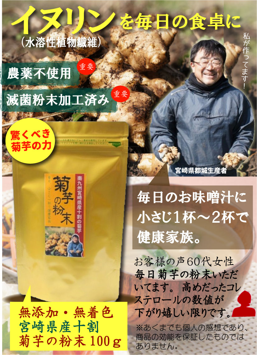 九州宮崎県産100%菊芋の粉末100g×3袋