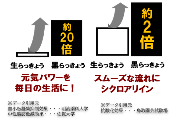 黒らっきょうには畑の薬とも呼ばれる『生のらっきょう』を上回る機能性が注目されています。