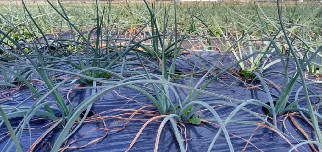 熊本県上益城郡御船町と嘉島町で栽培しております。黒マルチをしていても穴の隙間から草が生えてくるので、葉っぱが生い茂るまでは抜き続けないといけません。日照りが多い日には、豊富な地下水を散布してます。